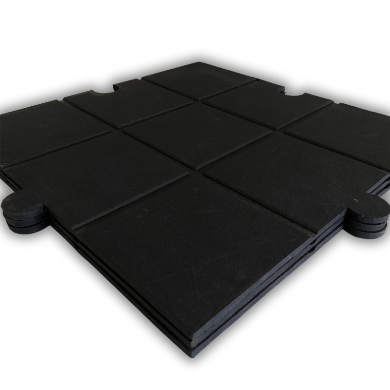 Baldosa fabricada en caucho de alta densidad, diseñada para resistir condiciones exigentes en entornos industriales. Su superficie antideslizante y capacidad de absorción de impactos la hacen ideal para zonas de tránsito constante, maquinaria pesada y operaciones continuas. Además, ofrece aislamiento acústico y confort ergonómico para los trabajadores.