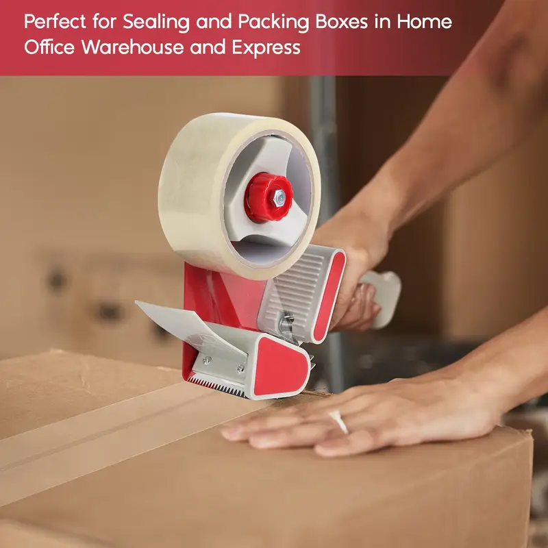 Herramienta manual para aplicar cintas adhesivas de 2". Facilita el cerrado de cajas, mejora la eficiencia y reduce esfuerzo en tareas repetitivas. Común en bodegas, despachos y líneas de empaque.