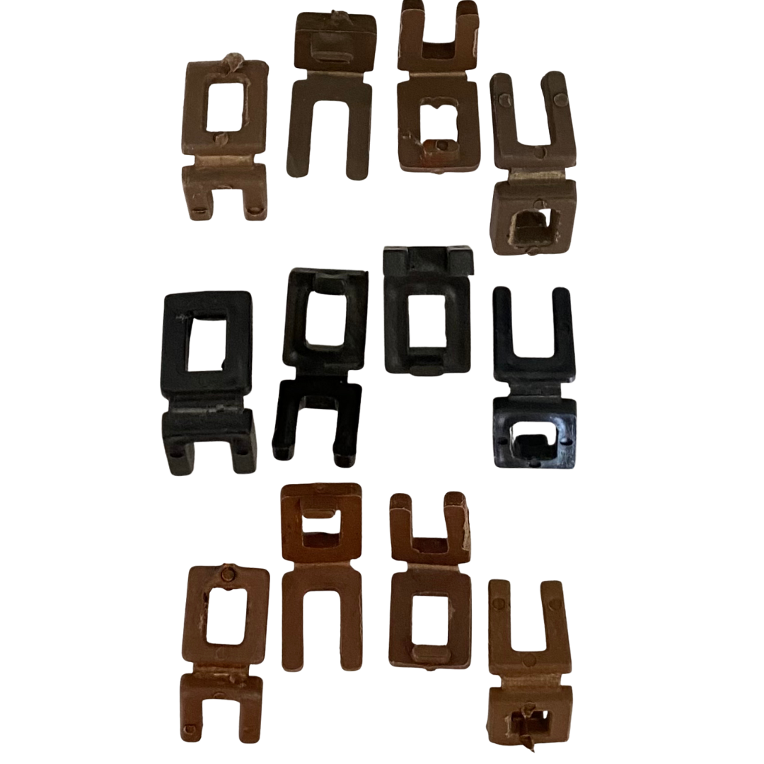 Grapas plásticas de alta resistencia para asegurar zunchos de polipropileno en procesos de embalaje. Presentación en bolsa. Colores: negro y ladrillo. Fácil aplicación manual o con herramientas. Ideal para paquetes medianos y grandes