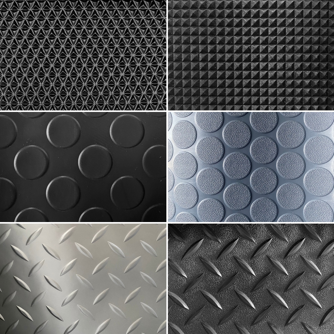 Piso multi en rollo con superficie texturizada antideslizante, disponible en diferentes patrones y colores para protección y recubrimiento de superficies.