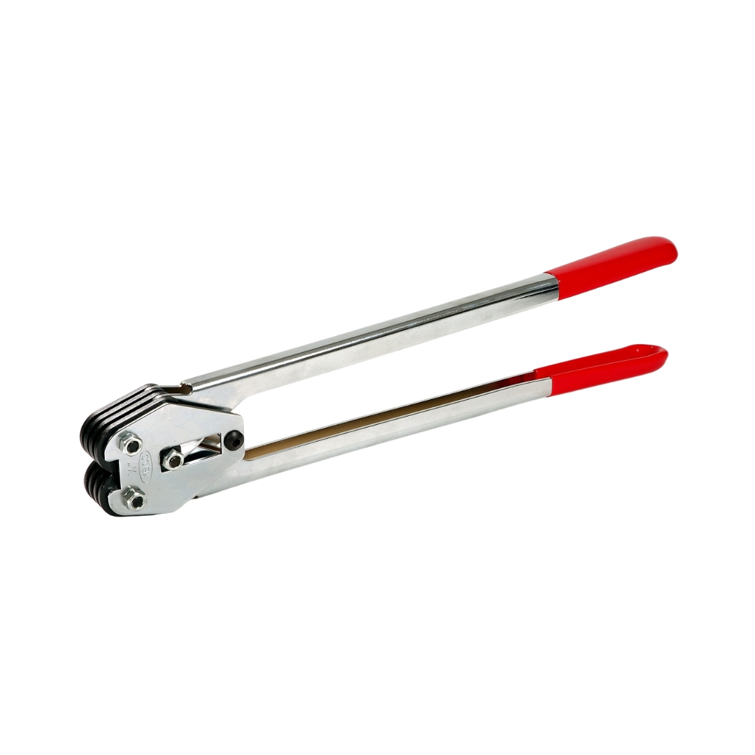 Tenaza de acción firme para grapas galvanizadas de 5/8" y 1/2", usada comúnmente en fijaciones de empaque.